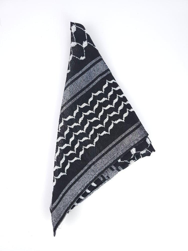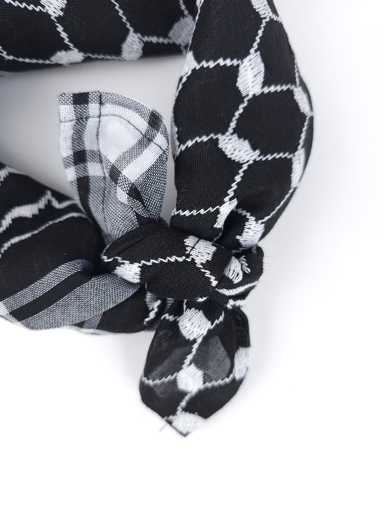 Handmade with care by our skilled Palestinian tailors in Jordan, this bandana is a perfect symbol of unity. Each piece is unique, with slight variations in print and minor imperfections that add to its charm.